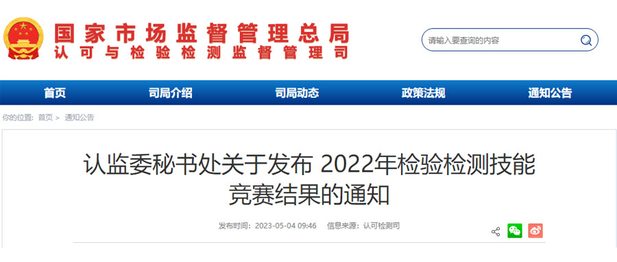 祝賀!全球通檢測在2022年檢驗檢測技能競賽中榮獲第15名
